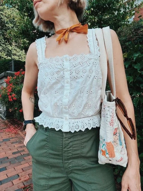 While my cold weather style always leans a bit more punk, my summer and fall style tends towards the romantic - breezy cotton pieces and floaty dresses - and DÔEN is a brand that I really love for all these things. Despite it being a bit out of my price range. But I know what to look for: ‘50s skirt sets, silk scarves, boots made to tromp through a meadow in, cotton voile tops, and basket bags that could be straight from Jane Birkin’s closet. Come fall, just add a fisherman sweater and a barn coat to the look. I did some digging on Etsy and found a collection of pieces to help you cop the DÔEN vibe, too: